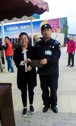 2017年10月13日下午,游客張先生在涇河智慧農(nóng)業(yè)園游玩時,忽然聽到附近一位保安人員的對講機中傳來了匯報在園區(qū)南門內(nèi)垃圾臺附近撿到一個失物挎包的事情,這才發(fā)現(xiàn)自己的挎包不慎遺失,忙向保安人員尋求幫助。在幾位保安人員耐心的幫助下,張先生如愿以償?shù)卣一亓俗约旱目姘=?jīng)檢查,挎包內(nèi)的2000元現(xiàn)金、一張銀行卡及一對非常貴重的物品均無缺損。張先生激動地說:“多虧了那幾位保安同志耐心熱情地為我提供幫助,本已丟失的包完璧歸趙,本已脫離我控制的財物全部完好無損的回到了我的手中,感謝他們高尚的品德和熱情的服務(wù)!”