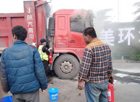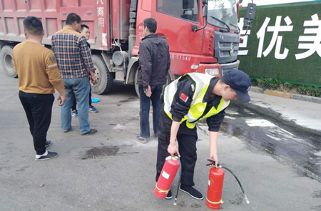 2019年3月20日12:50分左右,一輛車牌號為陜B51549的紅色輕卡冒著濃煙進入漢城服務(wù)區(qū)南區(qū),停在了入口處,場區(qū)執(zhí)勤的陜西龍翔保安服務(wù)有限公司保安員發(fā)現(xiàn)后及時匯報隊長和服務(wù)區(qū)值班領(lǐng)導,漢城服務(wù)區(qū)立即啟動應(yīng)急預(yù)案,由當班保安隊長為現(xiàn)場指揮,在疏散周圍車輛的同時,取來滅火器協(xié)助大車司機進行滅火,這時值班領(lǐng)導趕來現(xiàn)場,經(jīng)過大家近十分鐘的協(xié)同努力,終于將濃煙撲滅,沒有造成人員傷亡及更大的損失。