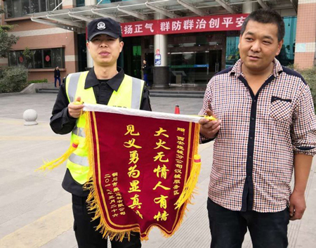 3月27日中午,貨車司機馮先生懷著激動的心情來到漢城服務(wù)區(qū)把一面印有“大火無情人有情,見義勇為顯真情”的錦旗送到漢城服務(wù)區(qū)保安隊長手里,感謝漢城服務(wù)區(qū)保安幫助自己撲滅著火車輛的事情。貨車司機馮先生贈送錦旗的行為讓服務(wù)區(qū)保安和所有工作人員非常感動,意識到自己身上所擔負的責任,激發(fā)了全體保安員的工作熱情。