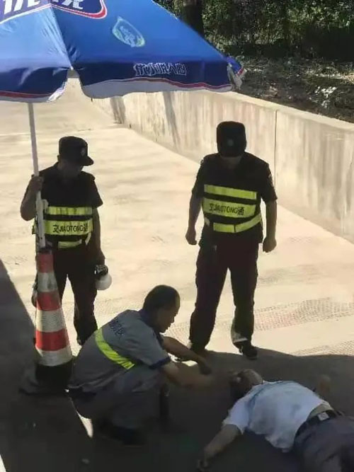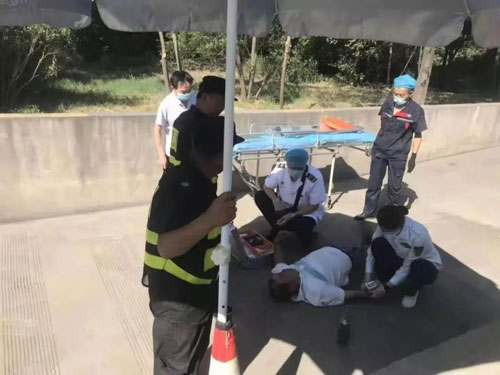 公司駐漢城服務(wù)區(qū)的保安康振偉在巡查場地時(shí)發(fā)現(xiàn)該情況,及時(shí)撥打了120急救電話,并向服務(wù)區(qū)工作人員匯報(bào)。工作人員第一時(shí)間趕到現(xiàn)場,因擔(dān)心挪動(dòng)會(huì)加重其傷勢,康振偉協(xié)助工作人員一起搬來遮陽傘為其遮擋陽光,避免暴曬,同時(shí)幫助該司機(jī)師傅鎖好車門以免財(cái)物丟失,隨后守在司機(jī)旁邊等候救護(hù)車的到來。
